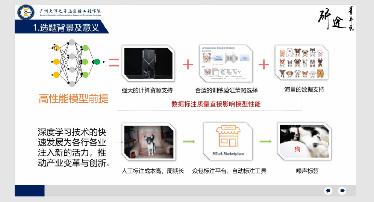 王枫同学提出了一个鲁棒的抗噪声标签图像分类方法,该方法可以实现在有噪声标签情况下挖掘被丢弃的难样本优化模型训练并保持良好的分类性能与抗噪声能力。首先,该方法设计了一个提取细节特征的补充特征模块,提高模型对于难样本的特征提取能力。其次,该方法采用了一个边界窗口样本分离模块,该模块可以有效区分难样本与噪声样本,并将被误分为噪声的难样本进行回收利用提升模型对于难样本的识别能力。