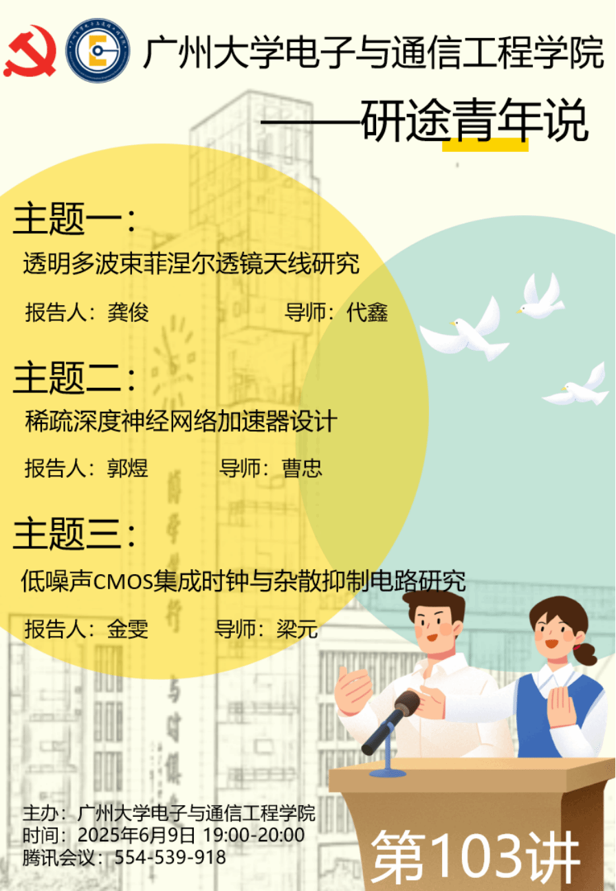 主办的“研途青年说”第103讲于6月9日19:00-20:00在腾讯会议554-539-918线上展开。本次主讲人为研究生龚俊、郭煜和金雯。