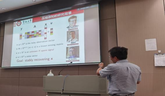 温金明教授首先介绍了压缩感知的研究背景以及如何重构稀疏信号,在此背景下,通过详细的公式推导介绍了稀疏重构算法,提出了几种常用的稀疏信号恢复算法,最后提出了几个有待解决的问题以及后期的研究重点。温金明教授从研究背景、研究思路和研究结果等方面向同学们进行详细论述和分析。