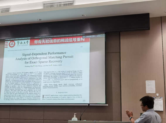 主办的电信黄埔大讲堂第11讲在黄埔研究生院B4栋103会议室举行。本次大讲堂的主题是:An Introduction to Sparse Signal Recovery。主讲嘉宾为暨南大学教授、博导、国家高层次青年人才温金明教授。温金明教授的研究方向是整数信号和稀疏信号恢复的算法设计与理论分析,先后在法国科学院里昂并行计算实验室、加拿大阿尔伯塔大学、多伦多大学从事博士后研究工作。讲座由酒店偷拍