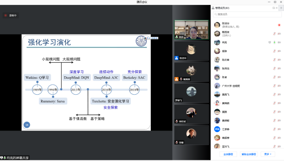 肖亮教授首先对视觉物联网进行了简要介绍,进而引出了视频传输这一视觉物联网中的重要环节,并对其目前所面临的挑战和难点进行了分析。其次,肖亮教授从视频传输系统的三个核心环节:压缩编码、信道编码以及调制方面分析了如何提高物联网中视频传输的性能。考虑到上述三者的权衡问题,肖亮教授还介绍了强化学习的发展历程及其相关算法。在此类知识的基础上,肖亮教授进一步为同学们介绍了采用强化学习算法,自适应选择视频传输策略的智能视频传输方案,并将其套入到实际场景中讲解。最后,肖亮教授从性能提升角度,阐述了所提方案的有效性以及未来可以改进的方向。