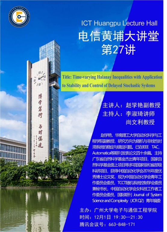 电信黄埔大讲堂第27讲:Time-varying Halanay Inequalities with Application to Stability and Control of Delayed Stochastic Systems