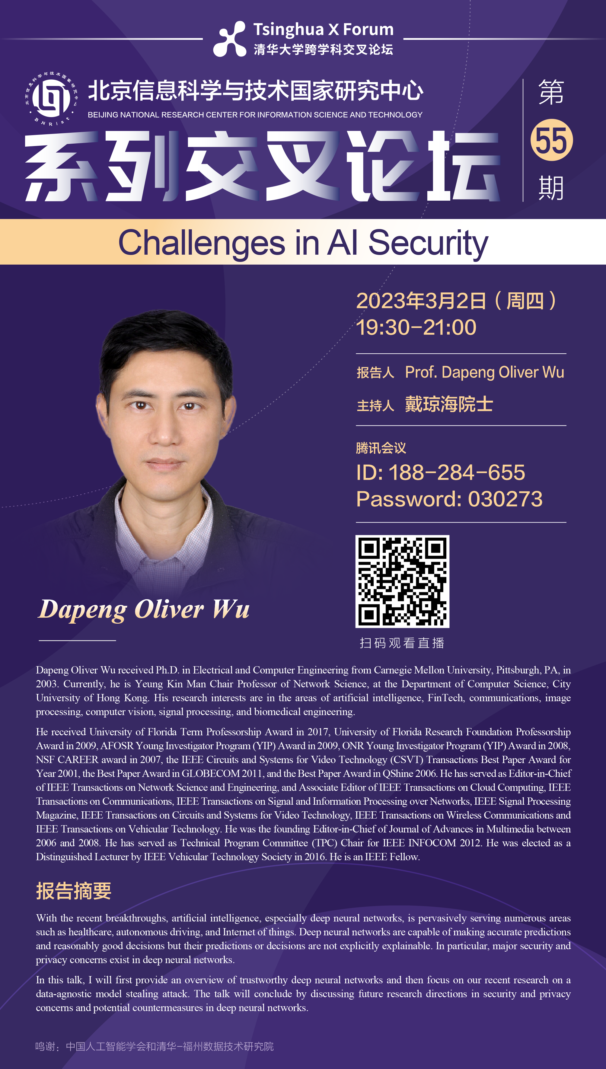 北京信息科技与技术国家研究中心系列交叉论坛第55期:Challenges in Al Security