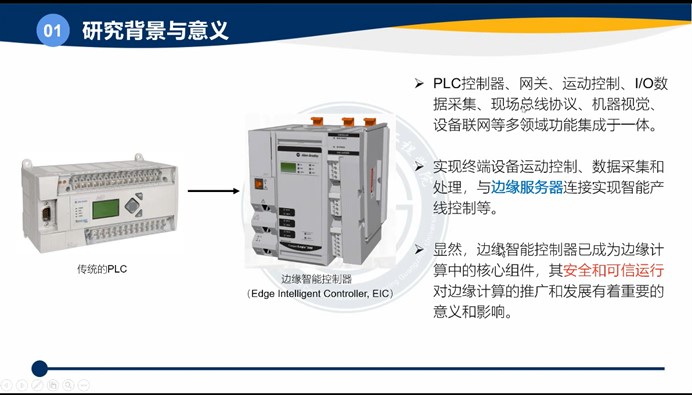 研究背景及意义:两个着重点,边缘智能控制器的安全和可信运行,身份认证对工业物联网安全保障的重要性。