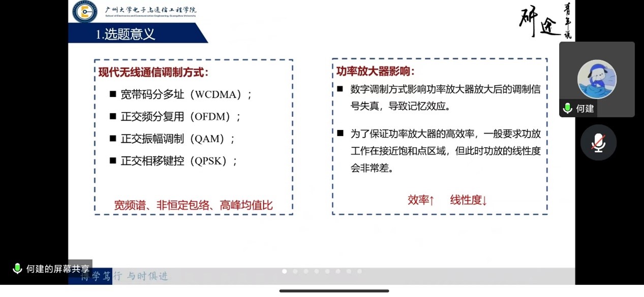 论文总结:1.介绍了数字预失真技术的研究背景、目的和意义,并且给出了数字预失真技术的两个研究内容。2.分享硕士期间获得的科研成果。