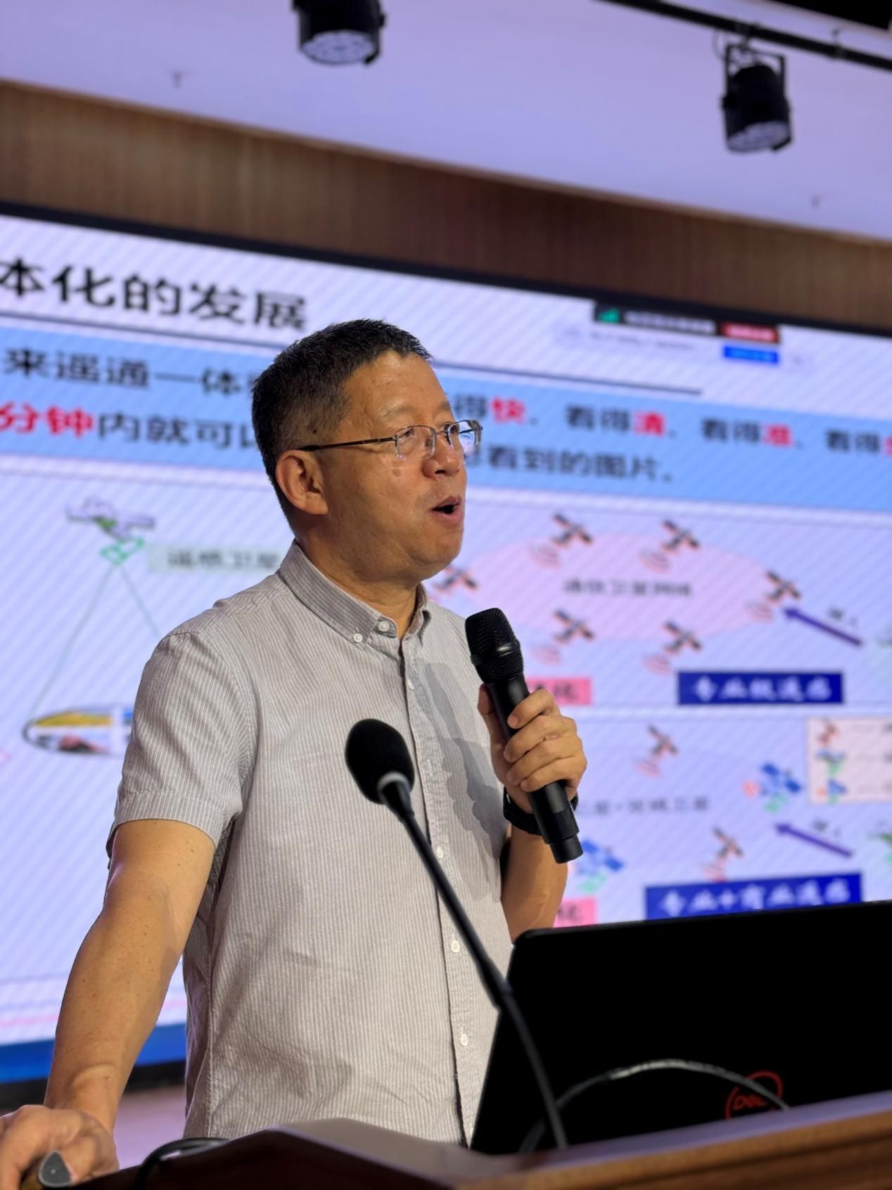 在会议上,孟教授向与会者们从卫星通遥一体化现状、解决方法与技术创新和通遥一体化系统展望三个方面,详细地讲述了卫星通信与遥感一体化创新与前瞻。