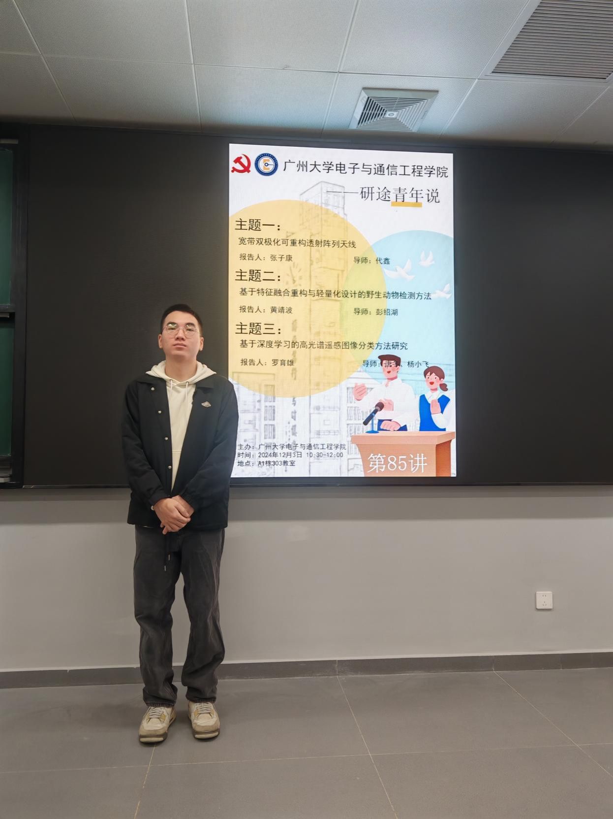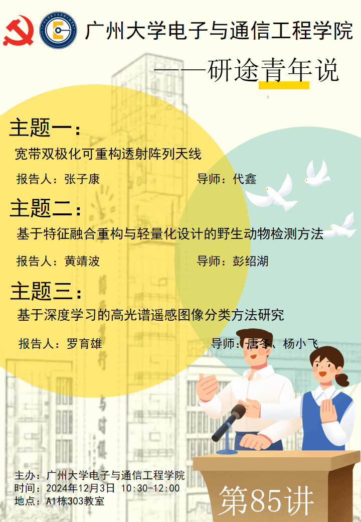 主办的“研途青年说”第85讲于2024年12月3日10:30-12:00在黄埔研究院A1栋303教室举行。本次主讲人为22级研究生张子康、黄靖波、和罗育雄。