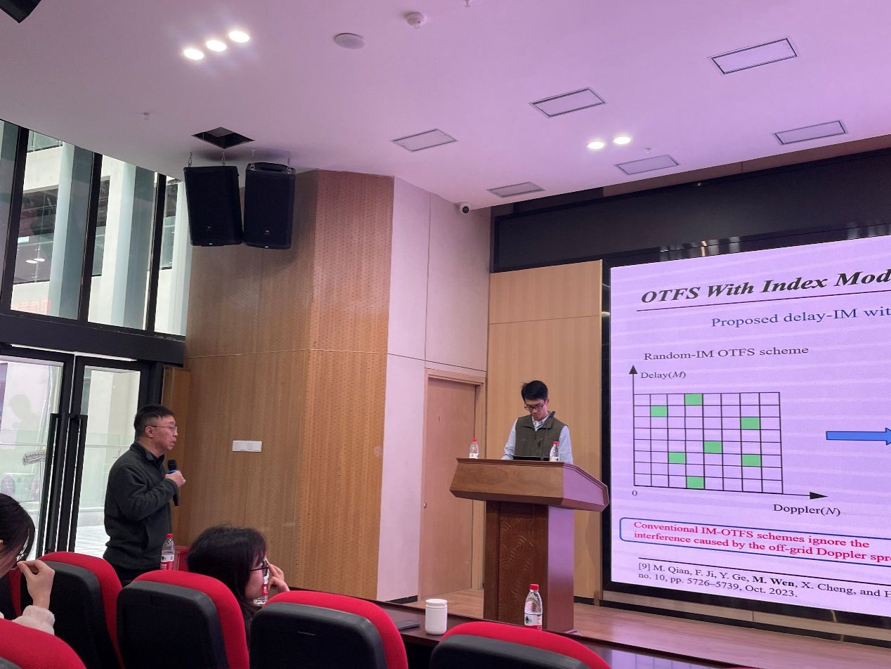 温教授首先介绍了背景,在目前由于信道的时变性高速移动环境中对宽带移动通信的需求不断增加,如何保证移动无线通信质量是一个具有挑战性的问题。接着介绍了时间变化信道的特性,第一个是稳定性/不变性:在延迟-多普勒发(DD)域种,只有传播路径长度和移动速度的突发变化会引起信道变化。它们是不变的,因为延迟和多普勒小于相干时间和带宽。第二个是紧凑性:DD域信道得到了紧凑的支持。第三个是可能稀疏性:当考虑到只有少数移动散射器的开放空间传播环境时,DD域信道可能享有稀疏性。