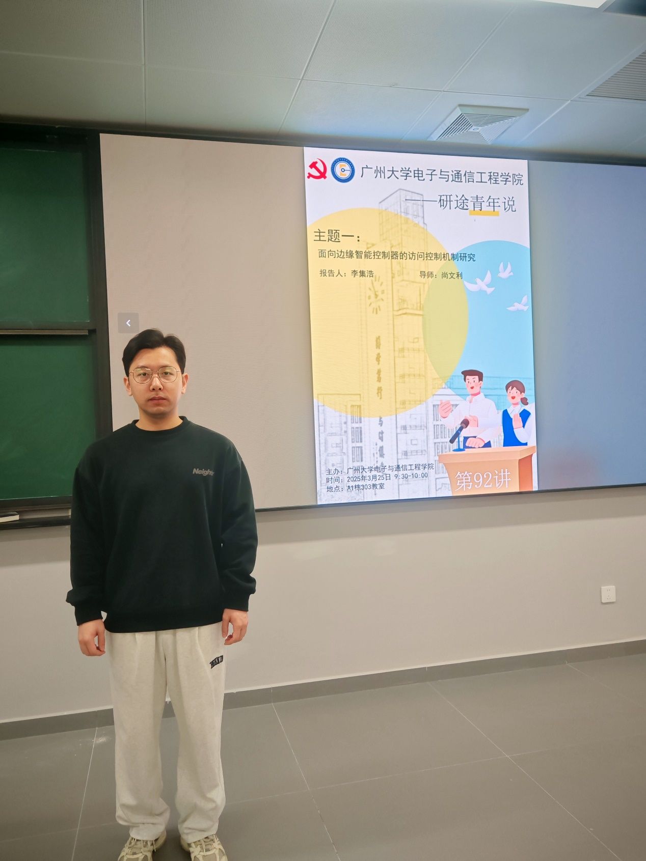 主办的“研途青年说”第92讲于3月25日9:30-10:30在黄埔研究院A1栋303教室。本次主讲人为研究生李集浩。