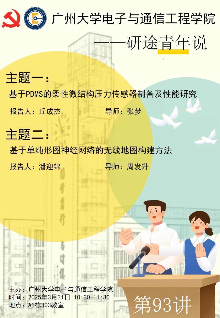 主办的“研途青年说”第93讲于3月31日10:30-11:30在黄埔研究院A1栋303教室。本次主讲人为研究生邱成杰、潘迎锦。