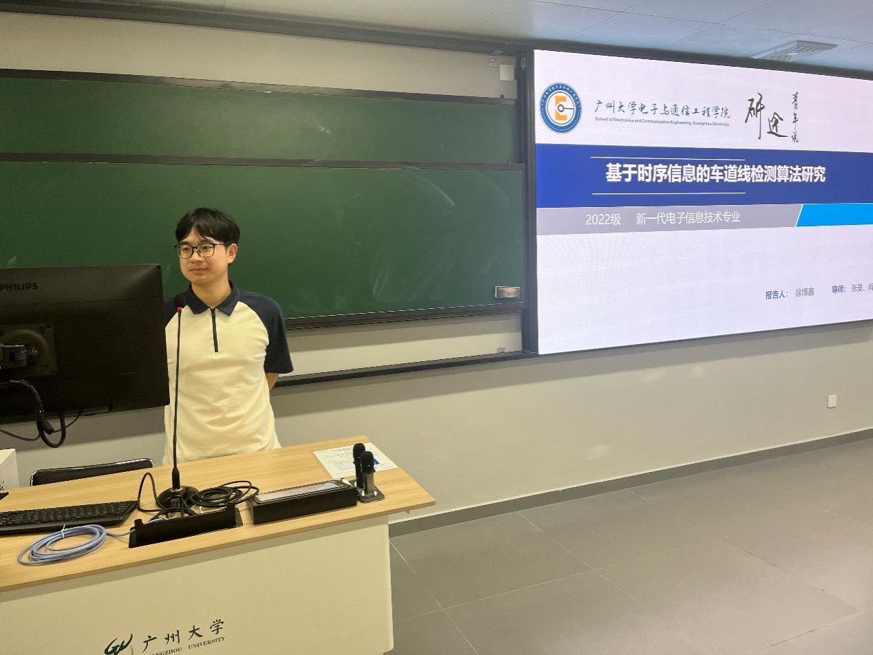 徐博鑫同学主要基于时序信息的车道线检测算法,介绍了道路交通事故背景及ADAS技术在LDW/LKA/LCA中的应用价值。综述了传统图像处理与深度学习的车道线检测方法,重点阐述了两种改进策略:一是结合ConvLSTM与CBAM注意力机制的多帧时序特征提取;二是基于帧间运动特征聚合与NAM注意力机制的视频检测方法。通过TuSimple和VIL-100数据集实验,验证了所提方法在准确性和稳定性方面的提升。最后展望了模型轻量化、自监督预训练及复杂场景应用的研究方向。
