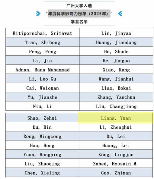 梁元老师入选“年度科学影响力榜单(2025年)”。