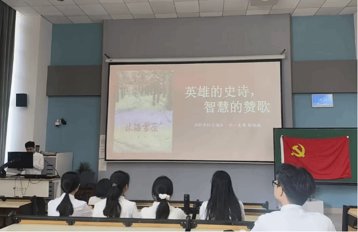 最后,杨锦鹏同学提炼出三点启示。一,坚定的理想信念是战胜困难的精神支柱。二,集体协作是成就事业的关键。三,依靠群众是革命成功的根基。他表示,当代青年应从经典中汲取力量,在学业科研中传承协作精神,在成长路上坚守初心使命。让在场者对《林海雪原》的时代价值有了更深刻地理解,进一步推动了红色精神的传承与践行。
