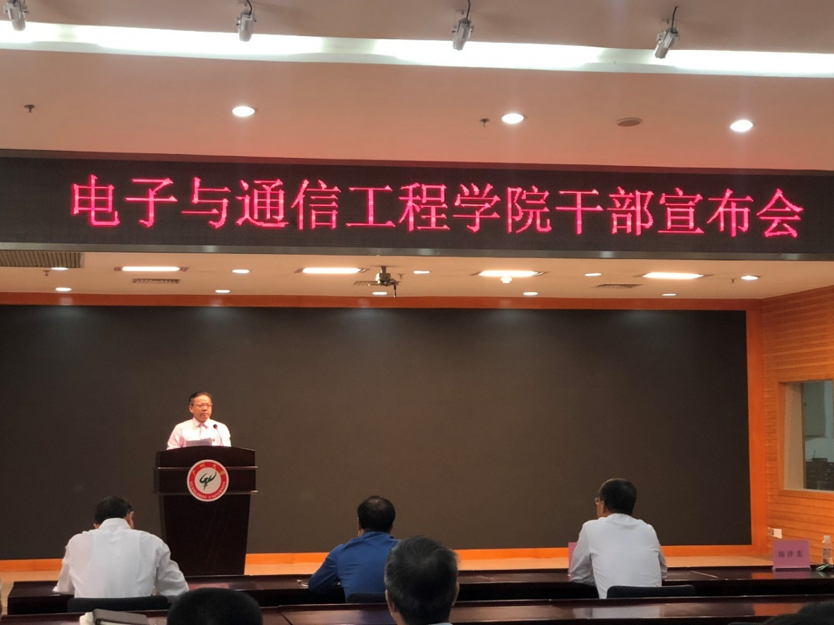 随后,魏明海校长发表讲话,他强调,一是学院领导班子要敢担责、敢负责、善作为,明确学院发展方向,抓住工作重点,凝心聚力做好学院建设;二是要树立良好学院文化,加强师生沟通交流,使学院风气正,人心齐;三是全院教职工要团结一心发挥深圳特区建设精神,敢闯敢干,组建团队集中力量找到在电子和通信领域的突破口,平衡好人才培养、科技创新和服务社会三者关系。