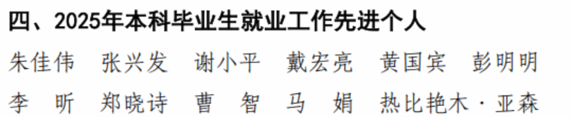 获评2025年本科毕业生就业工作先进单位,陈泽龙、张技老师荣获2025年普高招生工作先进个人,谢玲、曹忠、揭海、彭绍湖老师荣获2025年本科毕业生就业工作先进个人。(文案:张宇靖 编辑审核:谢玲)