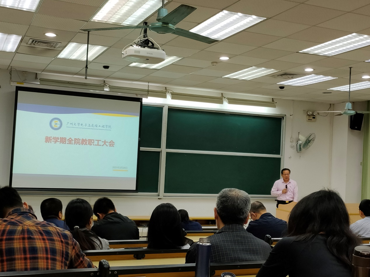 2月25日,学院于理科南110召开全院教职工大会,学院领导班子、全院教职工参加会议。