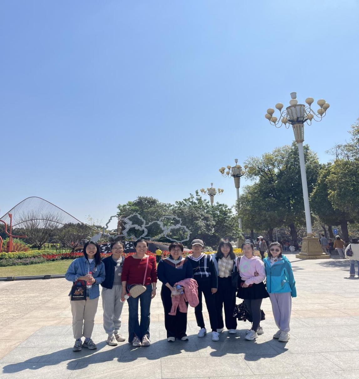 广州海珠湖公园湖心区面积1422.6亩,其中水面面积79亩,由内湖和外湖组成的。外湖实际上是由六条河涌相连组成的“玉环”,环抱着圆形的内湖,十分优美。因此,海珠湖也被形象地比喻为“金镶玉”。海珠湖公园恰好与广州塔、体育中心呈一直线,湖区、果园组成了广州市中轴线南段的“生态绿轴”,成为名副其实的广州“绿心”。女老师们参观了海珠区最大的湖泊,沿湖泊园踏青赏花,观看湖中飞翔的各种鸟类,一起渡过了一个舒适随性的下午。
