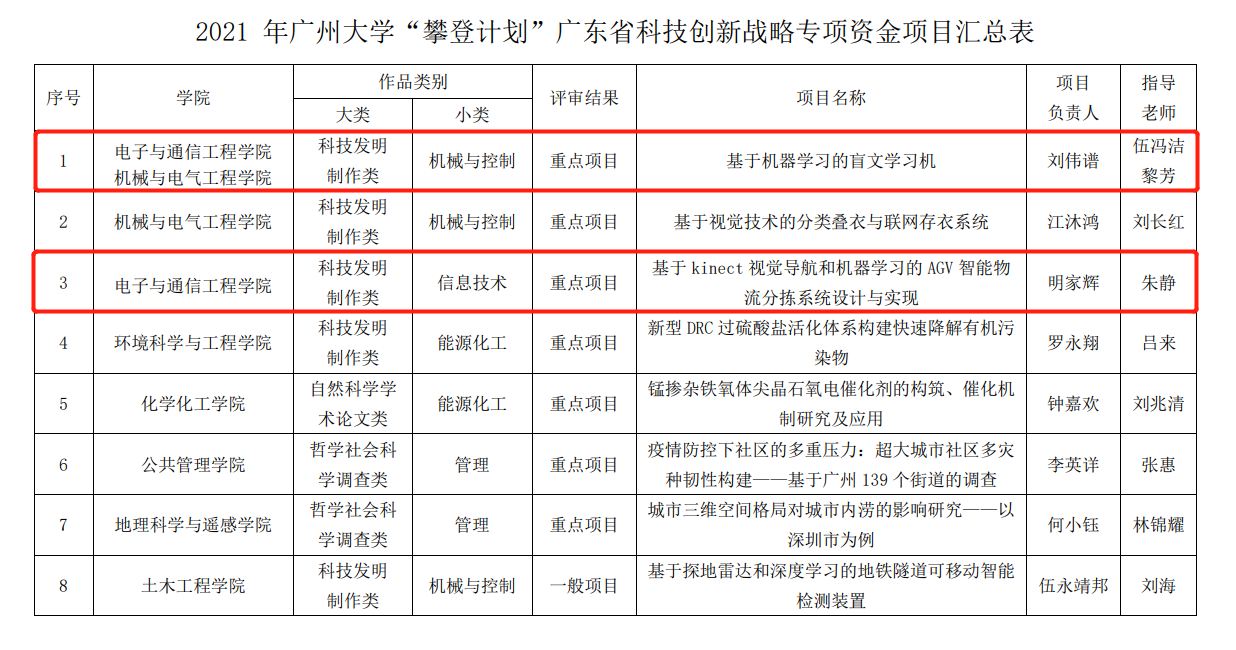 为落实省委、省政府实施创新驱动发展战略,进一步激励青年大学生成长为创 新创业生力军,学校于今年 12 月组织开展了 2021 年广东省科技创新战略资金(简称“攀登计划”)项目申报工作。经学生申报和专家组评审,学校确定 19 个项目为拟立项项目,3 个为候选项目。现予以公示。公示时间为 2020 年 12 月 11 日至 12 月 17 日。