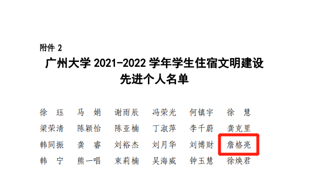 其中,酒店偷拍 荣获2021-2022学年学生住宿文明建设先进学院,詹格亮老师被评为2021-2022学年学生住宿文明建设先进个人。