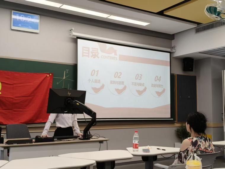 参与中期答辩的预备党员梳理了加入中国共产党以来的思想变化、科研学习经历、志愿经历、工作经历以及自身的不足和改进之处。