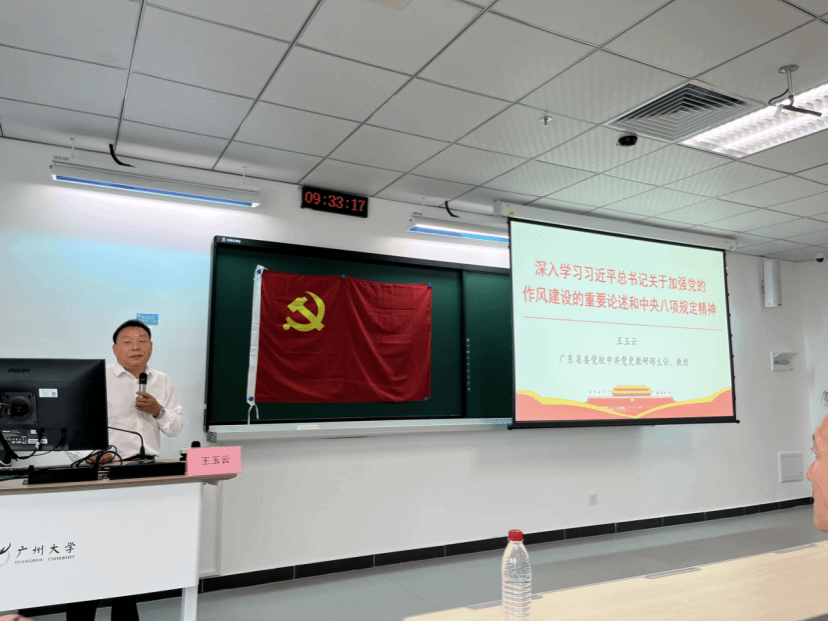 当天上午,全体师生党员首先集中参加了由中共广东省委党校党史教研部主任王玉云教授带来的《深入学习习近平总书记关于加强党的作风建设的重要论述和中央八项规定精神》专题党课。