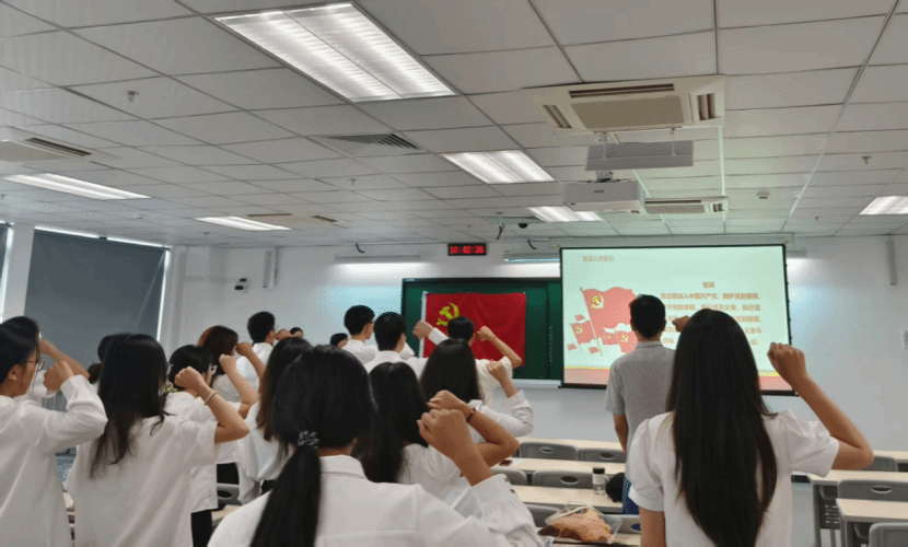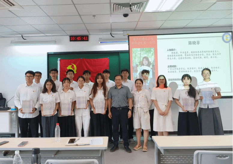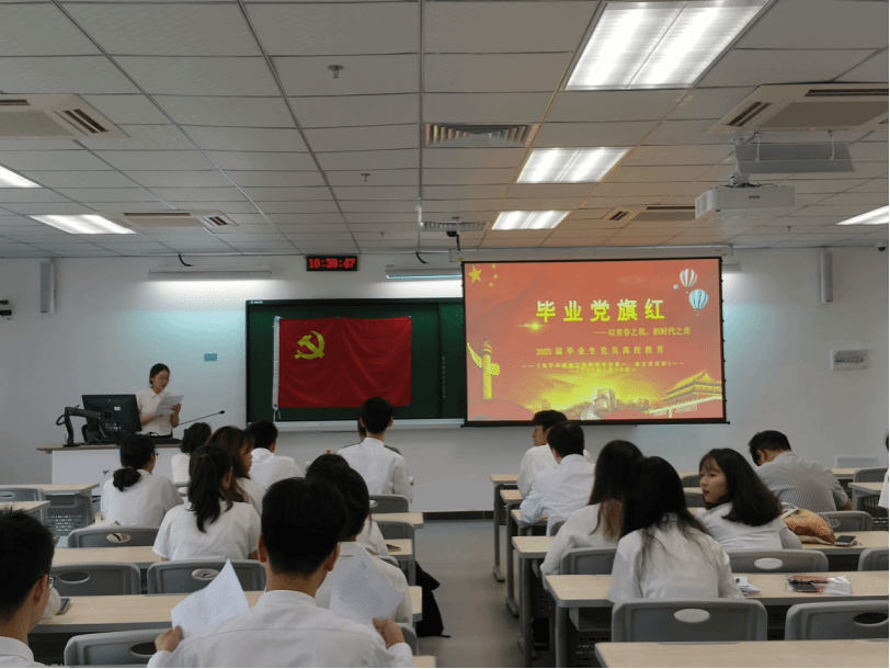 2025届“毕业党旗红”暨毕业生党员离校教育活动接续举行。学院党委书记陈泽龙、学生第一党支部书记欧阳曦、学生第三党支部书记王沁芳,以及学一、学三支部的全体党员出席活动。