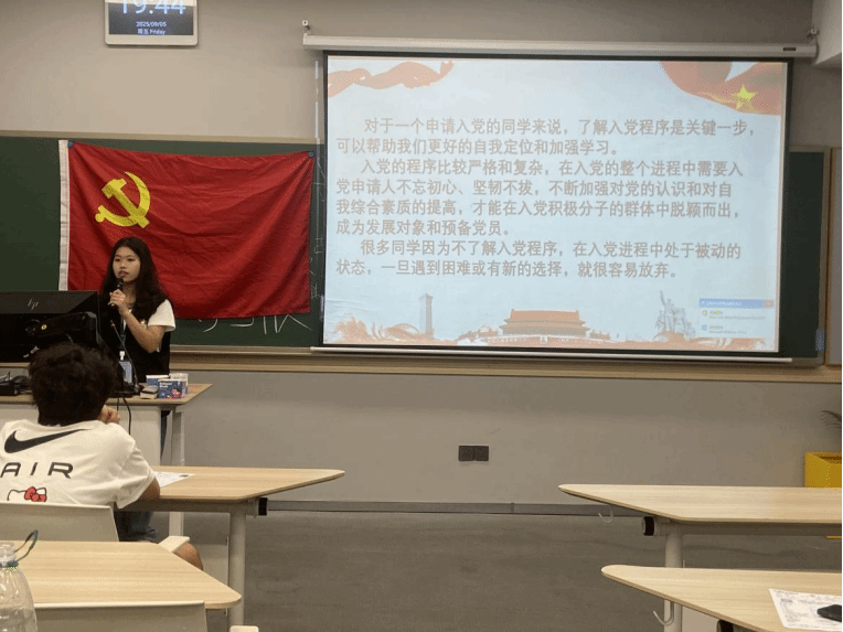 学生第一、第三党支部于2025年9月5日晚上在理科南教室开展新生入党前教育,学院全体2025级新生参加此次活动。