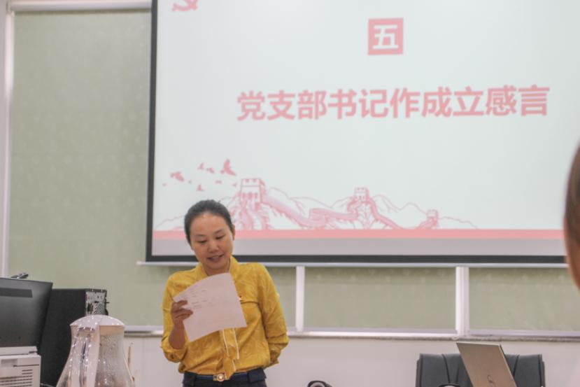 随后,党支部书记欧阳曦同志代表支委做了发言:感谢党组织的培养和信任,同时深感责任的重大,作为一名党支部书记,要努力做到以下几点: