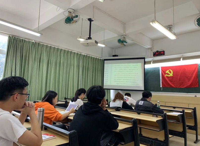 党支部组织新一批发展对象进行《中国共产党章程》学习,为下午的党课考试做好准备。