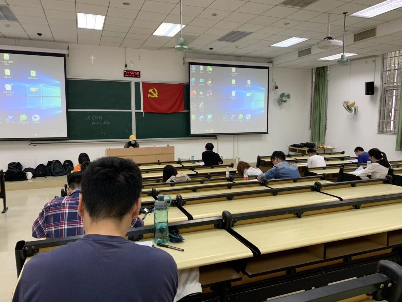 学生党支部的新一批入党发展对象在文新106进行了党课结业考试。考场上,他们奋笔疾书,为此次的党课培训画上圆满的句号。