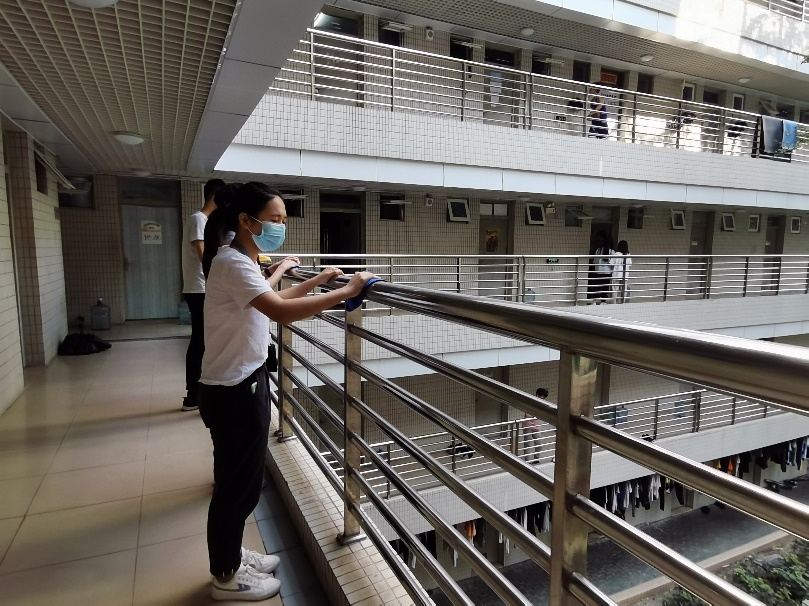 党支部组织新一批入党发展对象进行公益实践活动——在菊苑3栋进行宿舍楼道打扫以及卫生检查。