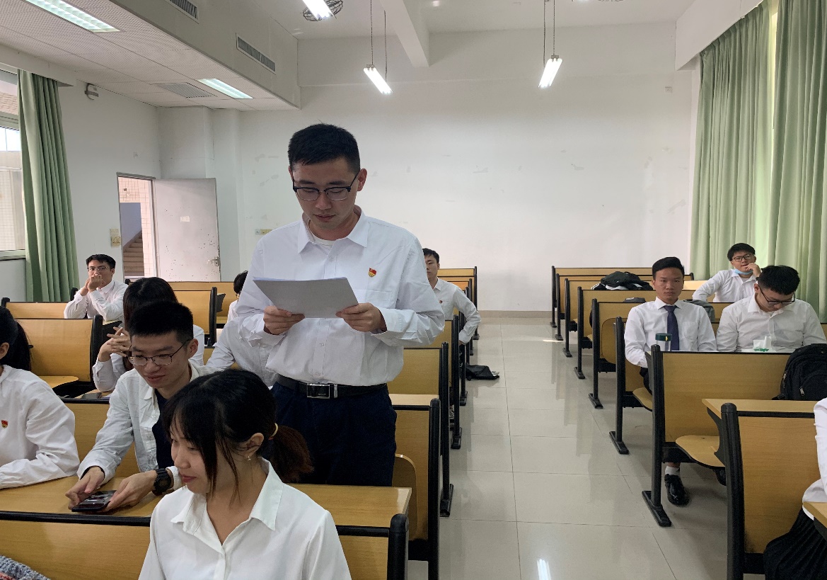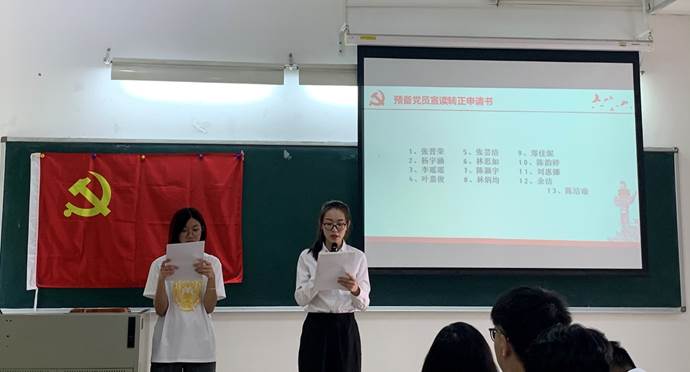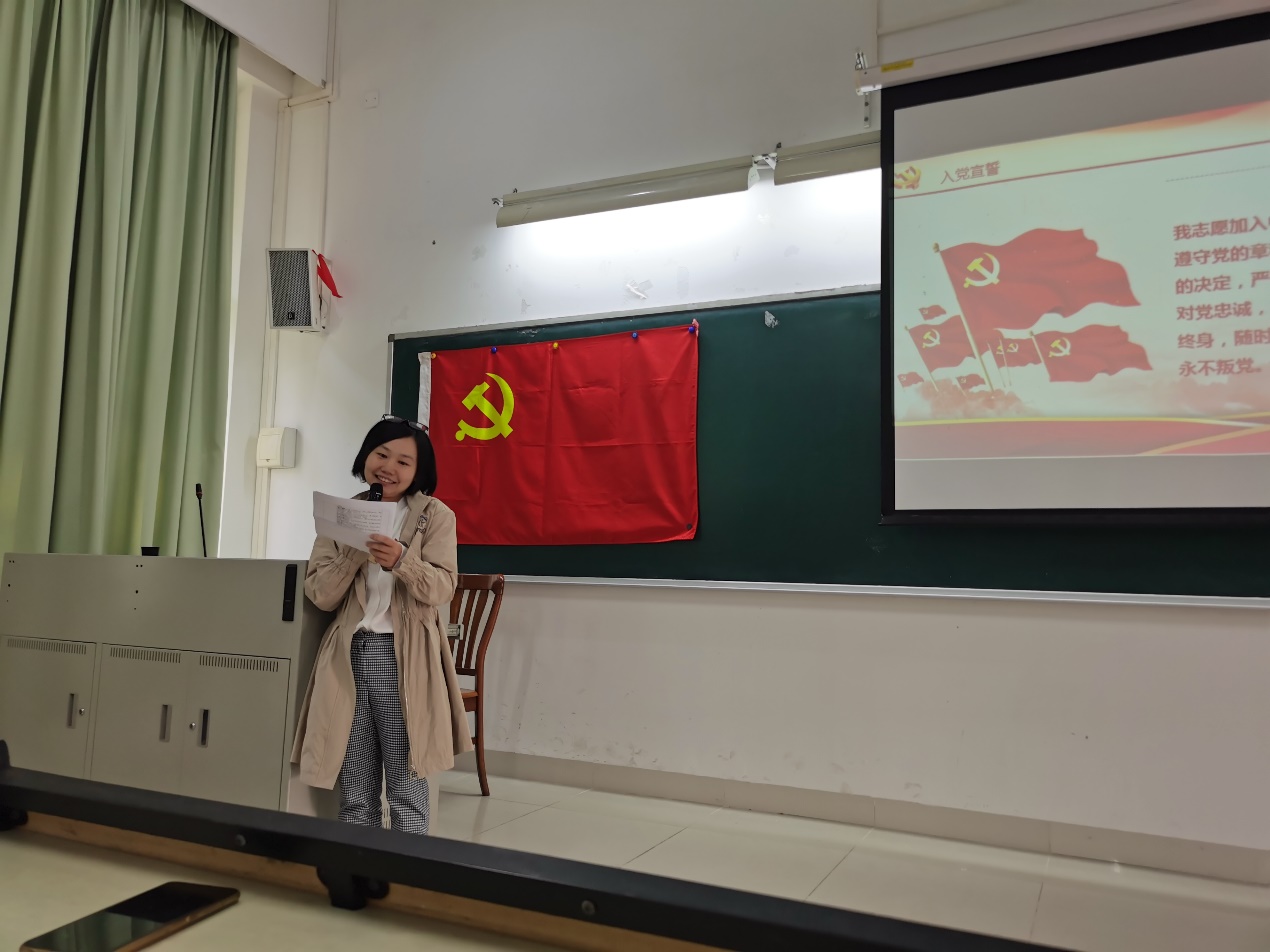 支部书记欧阳曦老师宣读学院党委对支部转正大会召开的批复。