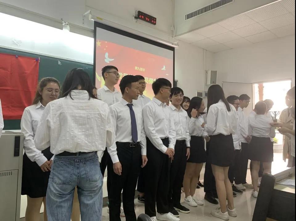 为了激励新发展党员坚定理想信念、牢记入党初心,2020年12月05日,在理南103举行新发展预备党员入党宣誓和老党员为新成员佩戴党员徽章仪式。