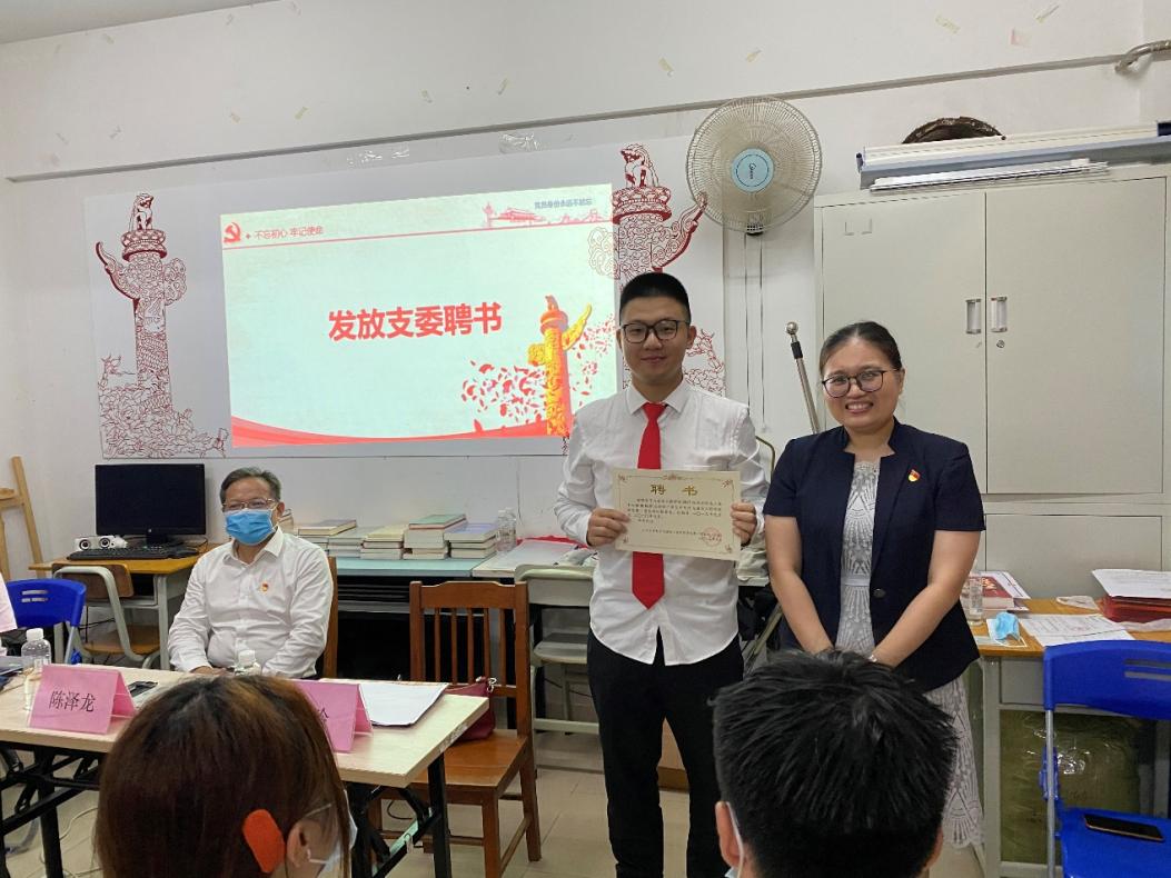 学院党委副书记谢玲老师给学院曾任党支部支委的毕业生党员颁发聘书,并对学生们在党建工作中的努力与付出作出肯定,鼓舞他们能够在新的党组织里继续发挥奉献精神,做一名合格的共产党员,在党爱党、在党为党,牢记为人民服务的初心和使命。