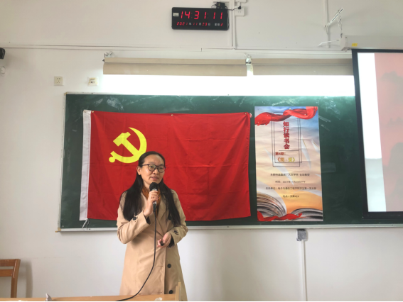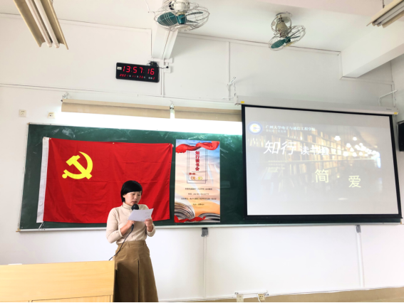 本次知行读书会由学生第一党支部书记欧阳曦老师主持。欧阳曦老师首先为在场的党员同志们介绍此次的特邀嘉宾金琼教授,接着引导学生党员有序进行此次的读书会分享活动。