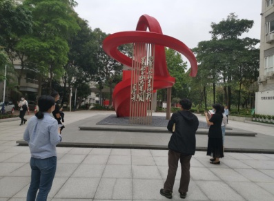 然后,大家来到红色文化长廊“地球的飘带”雕塑前开始参观学习。这尊雕塑取义于著名作家魏巍创作于1987年的一部长篇小说,描述中央红军长征的完整过程。雕塑飘带底部刻有红军长征中“爬雪山、过草地”主题浮雕,雕塑两端还配有LED屏,展示长征诗词“红军不怕远征难、万水千山只等闲”元素。在声光电技术的配合下,雕塑既是静态的艺术品,也具有很强的互动性和观赏性,寓意长征精神薪火相传。
