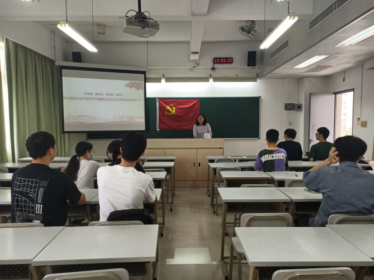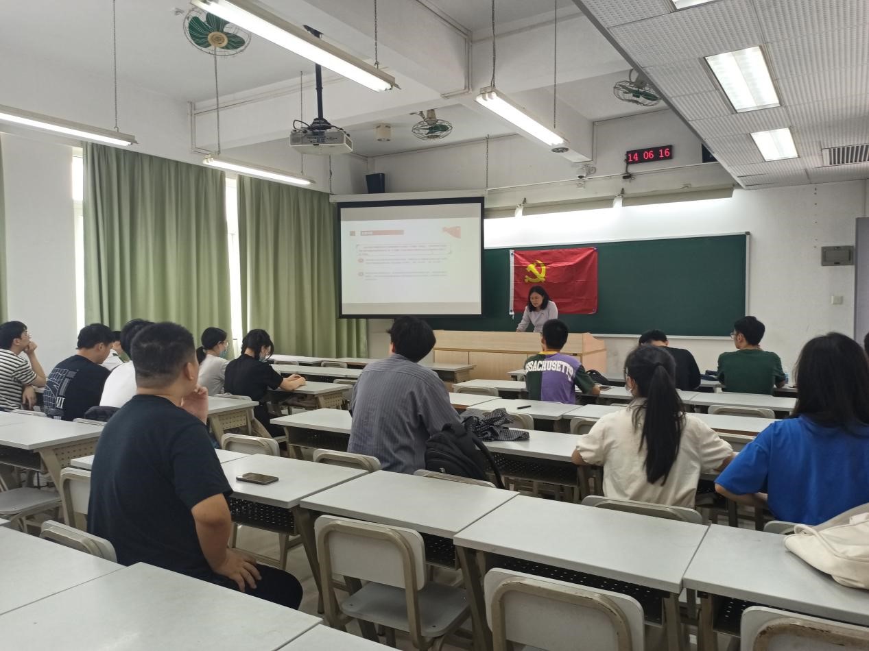 学生第三党支部在理南220开展党课教育,党委副书记谢玲、支部书记王沁芳出席本次会议。