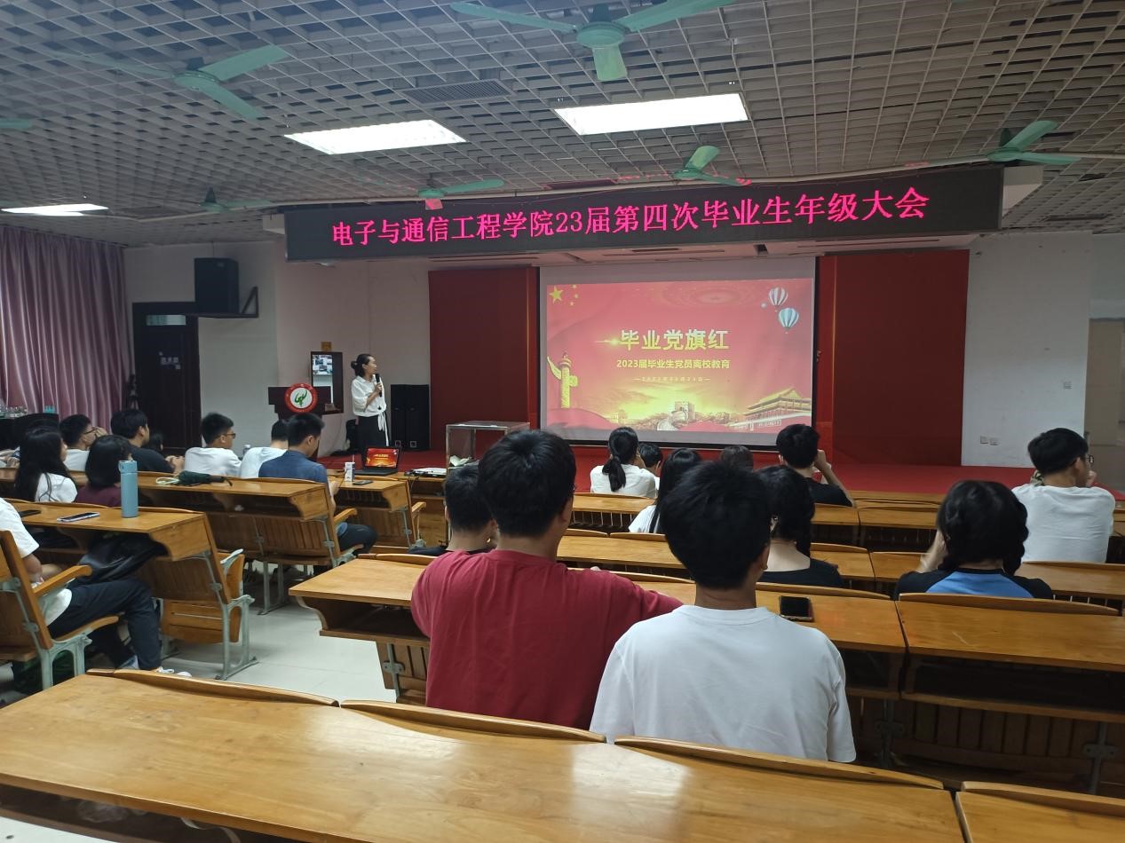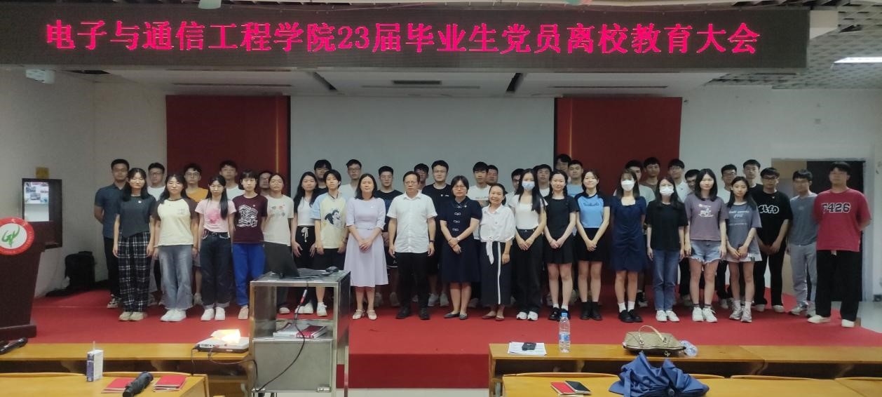 学生第一、第三党支部在图书馆附楼讲学厅组织开展了“毕业党旗红”2023届毕业生党员离校教育会,学院党委书记陈泽龙、党委副书记谢玲、学生第一党支部书记欧阳曦、学生第三党支部书记王沁芳出席本次会议。学生第一党支部书记欧阳曦老师主持会议。