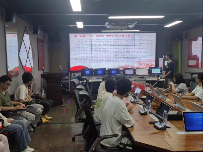 2023年9月11日,电信学院学生第一党支部和学生第三党支部在广州市迪士普音响博物馆党建活动室开展九月专题组织生活会,学习《中共中央关于在全党深入开展学习贯彻习近平新时代中国特色社会主义思想主题教育的意见》(以下简称为《意见》)明确的6个方面内容和习近平总书记关于以学铸魂、以学增智、以学正风、以学促干的12条具体要求的具体内容,学生第一党支部副书记温嘉文同志主持本次会议,学生第一党支部欧阳曦与学生第三党支部书记王沁芳老师出席本次会议。