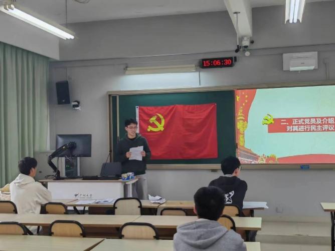 接着在正式党员及介绍人对预备党员进行民主评议环节中,与会正式党员陈奕源同志就参与中期答辩的预备党员这半年来的表现进行个人发言。陈奕源同志希望预备党员同志们能不忘初心,时刻以党员的标准严格要求自己,早日成为一名中国共产党正式党员。