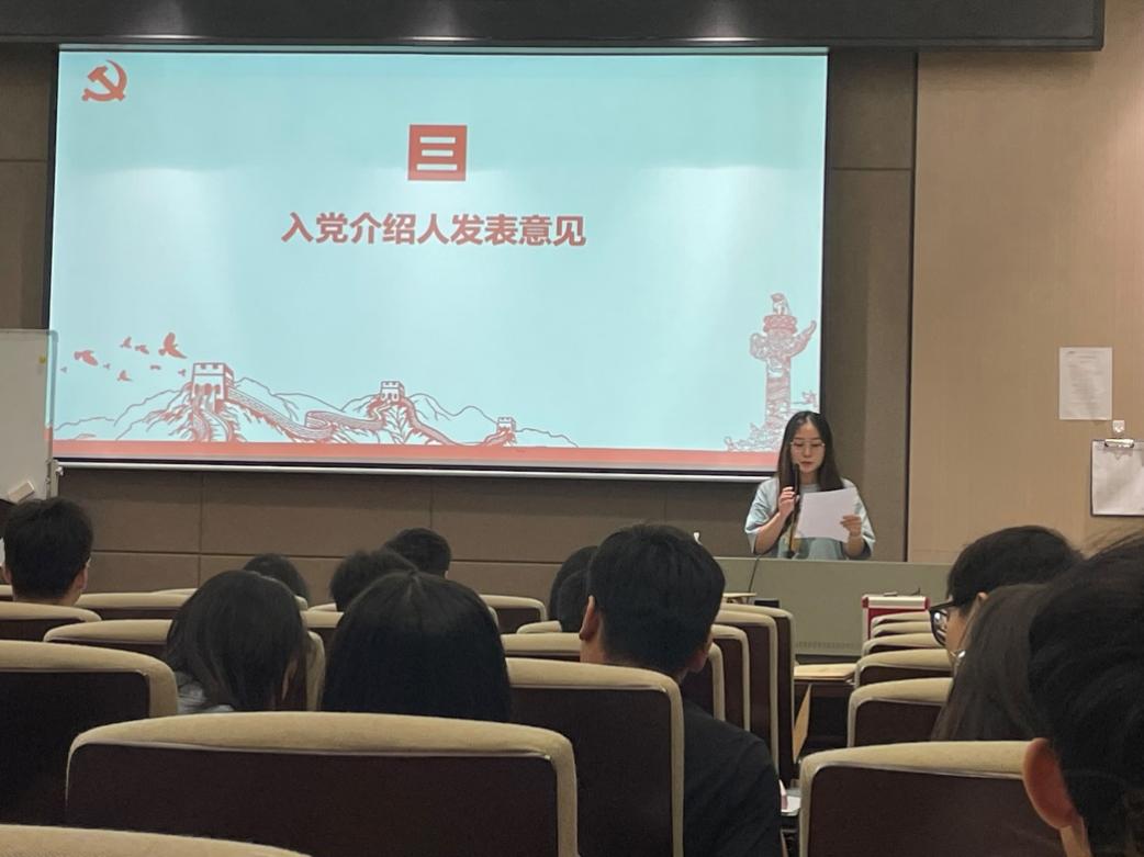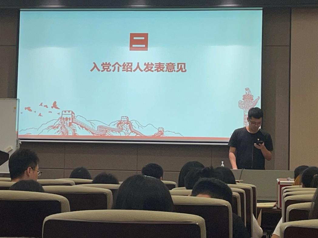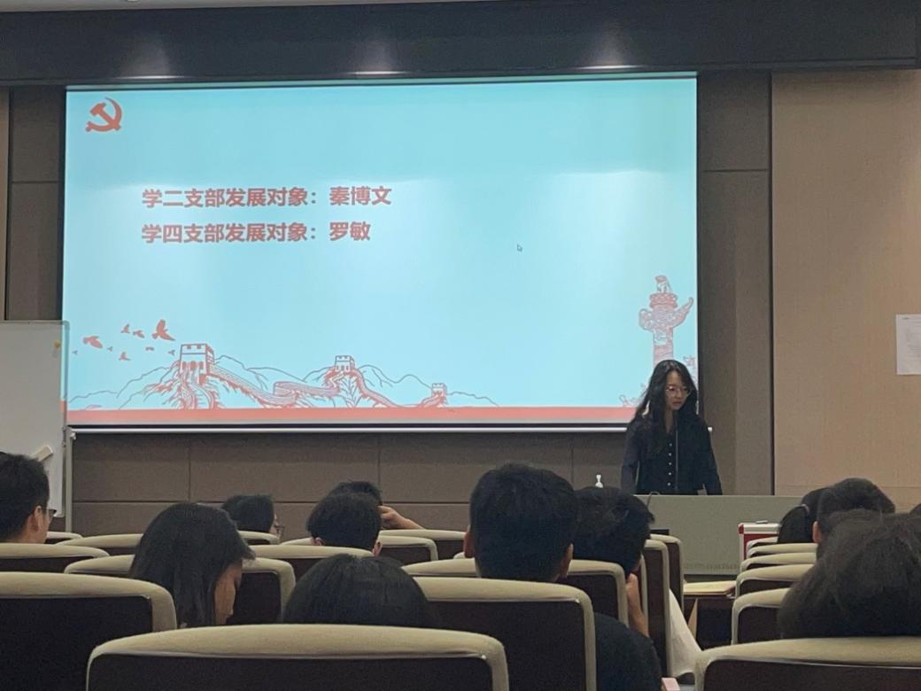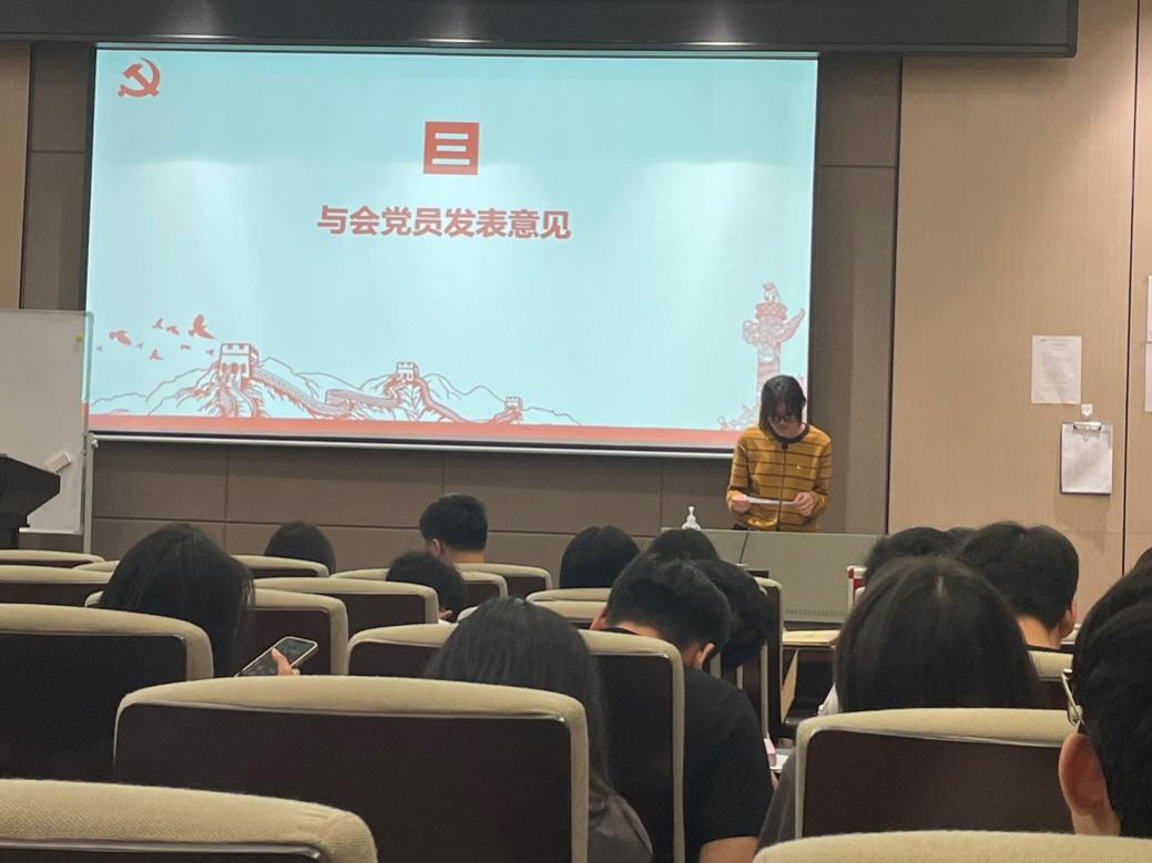 本次会议共有四项议程,一是支部书记讲党课,二是审议、讨论、表决党组织是否接收关于吴诗艺等3名预备党员的转正申请,三是开展关于秦博文、罗敏2名发展对象转为预备党员的通表大会,四是支委换届竞选。