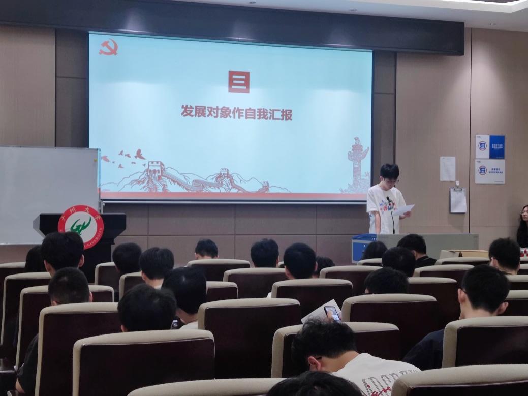 秦博文、罗敏2名入党发展对象依次向党组织汇报自身自成为发展对象以来的思想状况,表达了入党的决心与信心。
