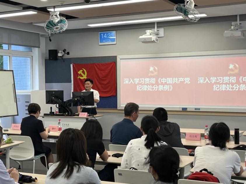 为深入学习贯彻《中国共产党纪律处分条例》以下简称《条例》),全面贯彻党的二十大精神推动党纪学习教育走深走实、推动《条例》入脑入心近日,电信学院党委邀请了中共广州市委党校习近平新时代中国特色社会主义思想研究中心主任、马克思主义学院院长王超教授来学院开展党纪学习教育专题辅导报告会暨党委理论学习中心组学习会。学院党委副书记谢玲主持会议,全体师生党员参加报告会。