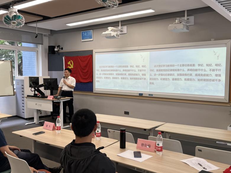 王超教授以“深入学习贯彻《中国共产党纪律处分条例》”为题给全体师生党员开讲。他首先提到这次党纪学习教育的一个主要任务就是:学纪、知纪、明纪、守纪,要搞清楚党的纪律规矩是什么,弄明白能干什么、不能干什么,进一步强化纪律意识、加强自我约束、提高免疫能力,增强政治定力、纪律定力、道德定力、抵腐定力,始终做到忠诚干净担当。随后从《条例》的修订逻辑、内容要点、贯彻落实三个方面结合《条例》具体内容和相关实际案例和数据进行详细解读。
