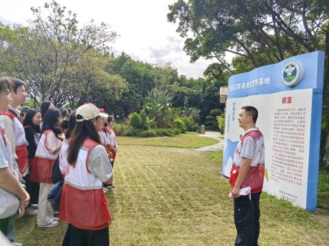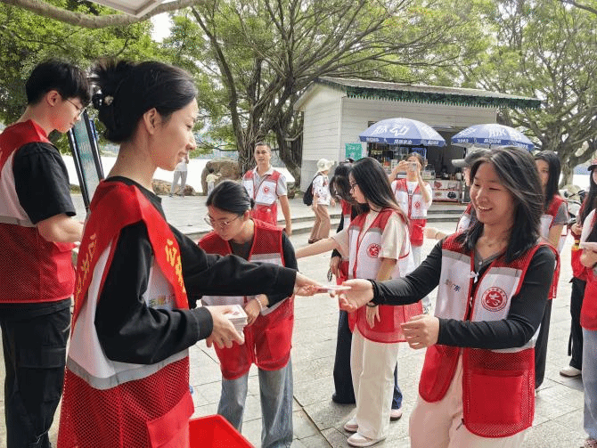 活动当天,学生党员早早抵达大夫山森林公园入口,合影留念后,他们在黄站长和邹站长的引导下,迅速融入活动氛围,换上了志愿者的背心,准备全身心投入到接下来的志愿服务体验中。