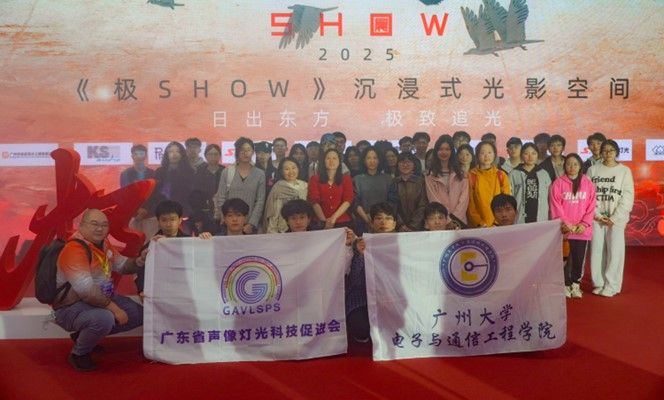 活动期间,师生党员们认真聆听企业技术人员的讲解,重点学习企业在技术创新、产品应用及市场拓展等方面的实践经验。在浩洋电子展区,校友代表以“师兄”身份分享职业成长经历,为学弟学妹们提供就业指导;在迪杰帕尔电子科技展位,学生们通过尝试操作舞台特效设备,亲身体验科技与艺术融合的独特魅力。此外,师生们还观摩了“C Show”与“极 Show”两场行业大秀,直观感受声光技术在实际场景中的应用价值,进一步激发了投身行业发展的热情。
