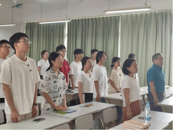 会议开始前,全体师生共同奏唱国歌。