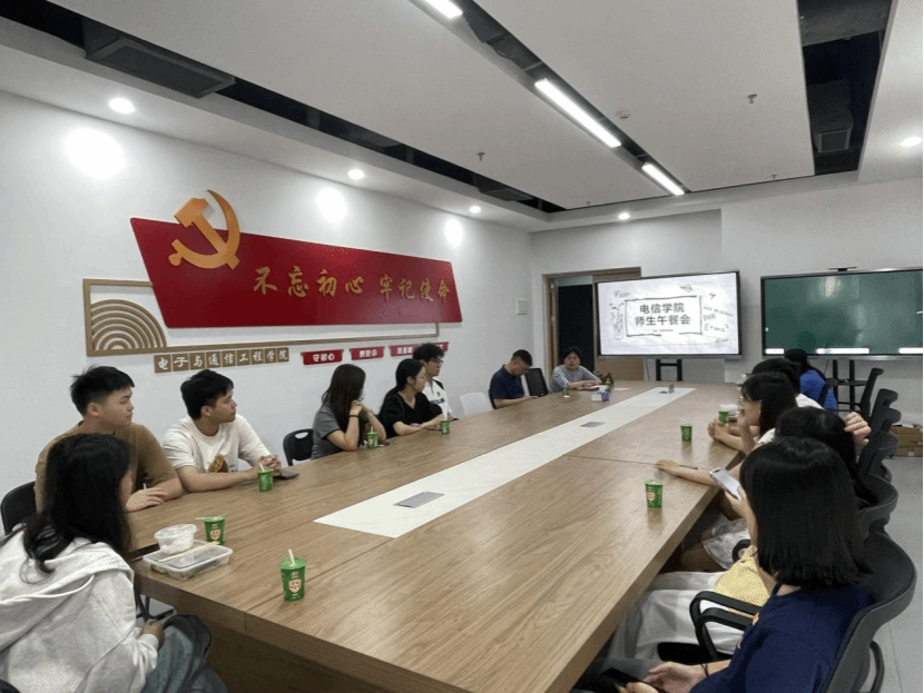2025年5月28日中午,电子信息与通信工程学院在黄埔校区A3栋411会议室举办第十三期师生餐会。师生边用餐边交流,围绕学院搬迁回大学城的相关事项展开讨论。
