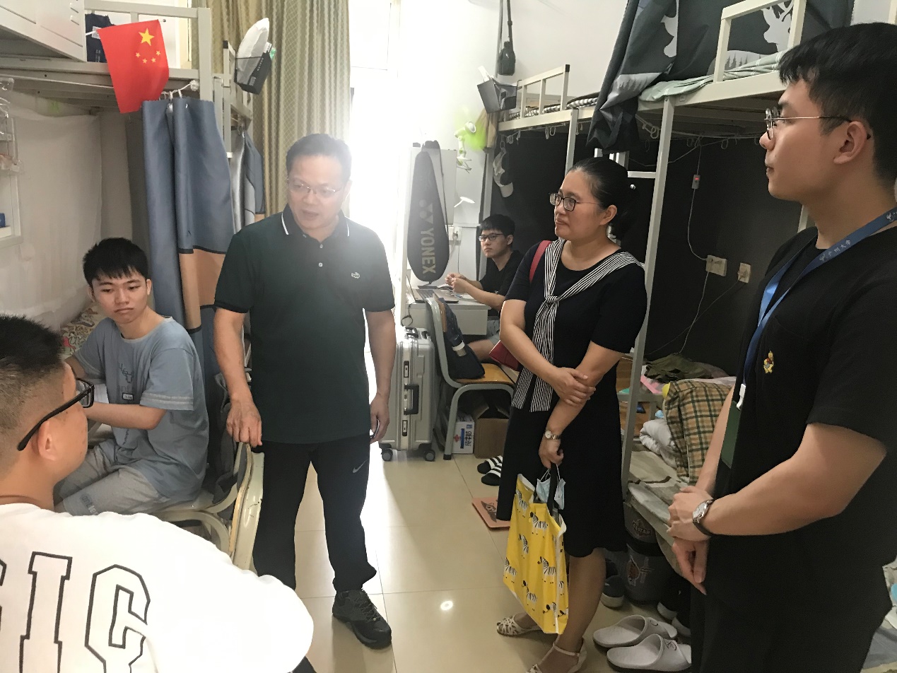 党委陈泽龙书记,谢玲副书记及全体辅导员深入宿舍,检查督促学生宿舍大扫除,了解返校学生心理状况、学习状况、身体状况。目前,学院在校学生627人,硕士41人,本科586人。陈书记与同学们亲切交谈,希望大家要高度重视疫情防控工作,不要麻痹大意,勉励同学们结合国家5g发展成果和学院学科特色,抓住学校发展,学院发展的重大机遇,积极准备考研,努力学习,报效国家。