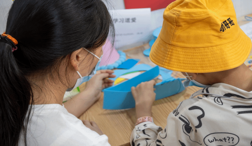 广州小家为孩子准备了制作帽子的材料,让他们用想象力画出独一无二的帽子。等做好后,孩子们戴着自己的“专属帽子”展示,说说自己的设计想法,让自信和创造力在这一刻闪闪发光。